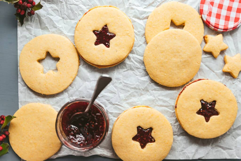 • Strawberry, raspberry, or blackberry jam Choose the jam that makes your heart leap. It brings bright sweetness and a little tang to balance the rich cookie layers.